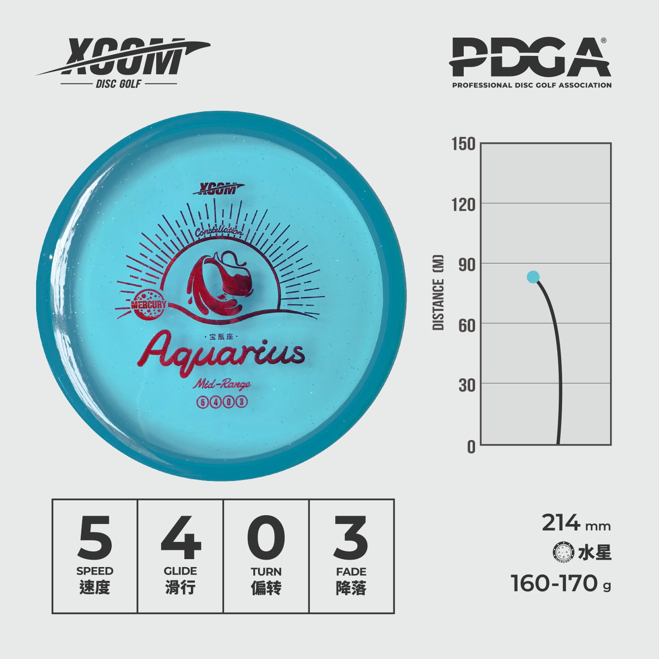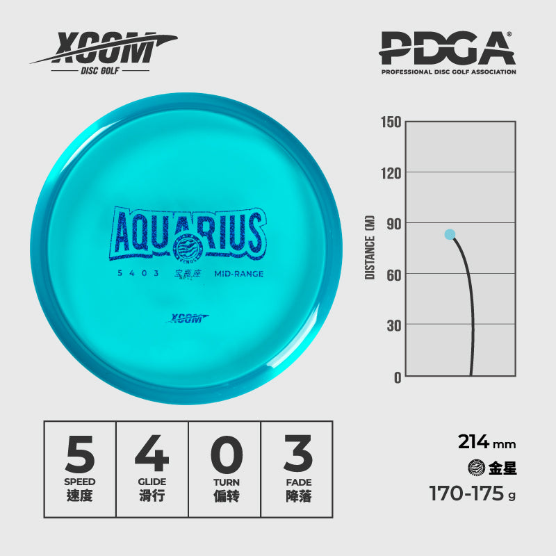 The Aqu (or Aquarius) is an understable midrange disc that is perfect for new players. It has plenty of glide and minimal fade, making it a great choice for slower arm speeds.