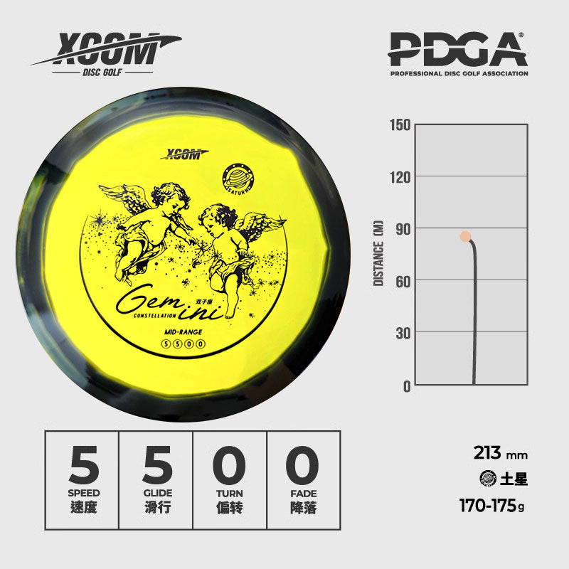 The Gem (or Gemini) is a neutral, straight-flying midrange that can handle enough torque to work well for seasoned players as well as new players. It has a rim that almost looks like a fairway crossover disc because of it's aerodynamic design.