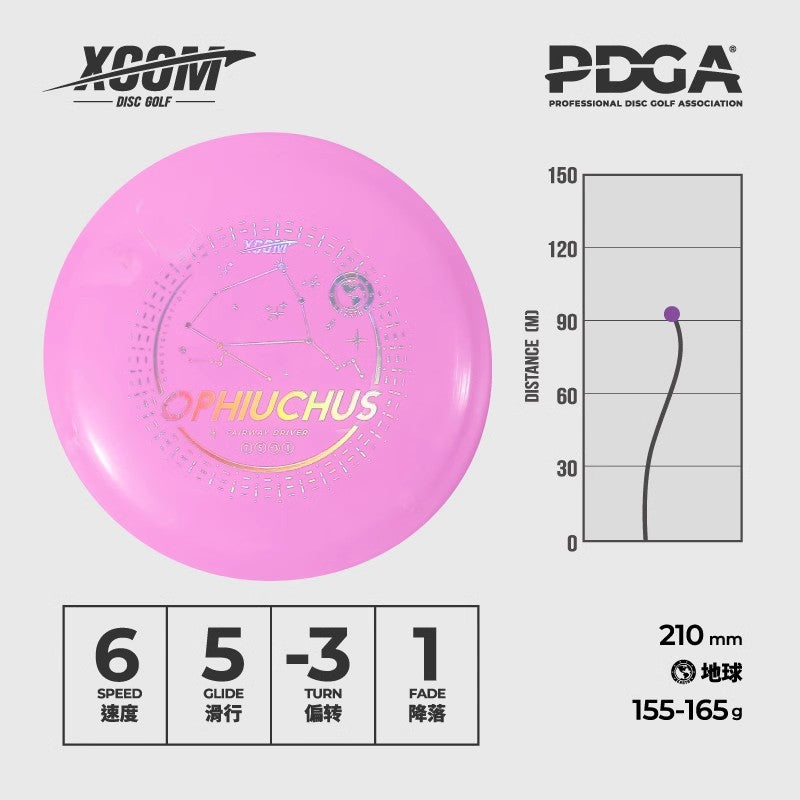 The Ophiuchus is a very easy-to-throw fairway driver that works great for beginners. It is understable enough to make a good flip-up or roller disc for seasoned players and is a fun option to have in your bag.