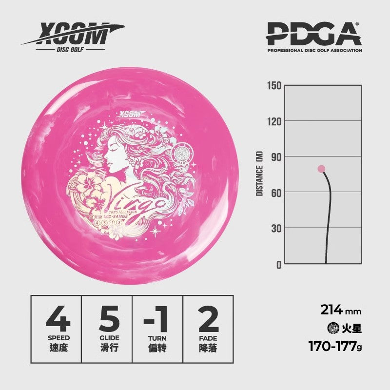 The Virgo putt and approach disc has a more aerodynamic rim than most putters, making it a slightly faster option with a shallow rim. It's something like a putter / midrange crossover disc that is stable enough to hold the line and finish with a slight fade.