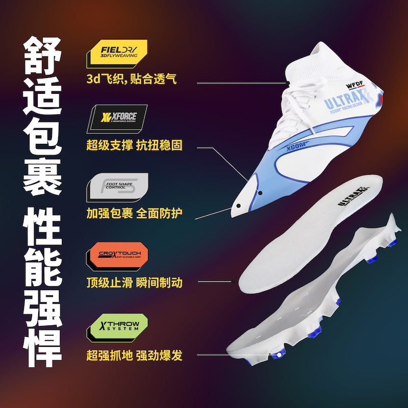 provides strong sole grip while ensuring a light foot feeling. The special layout of the forefoot spikes is like a ninja dart, allowing athletes to turn and release the disc more smoothly.